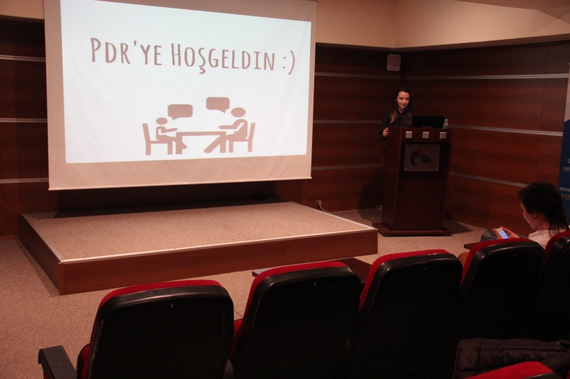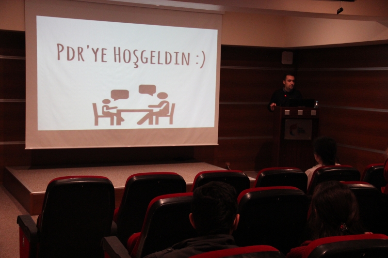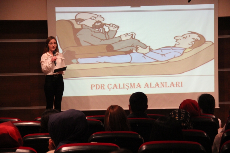 Seminerde PDR alanının tanımı, meslek özellikleri, iş olanakları, bölüm mezunlarının atanma ve yerleşme durumları ile Psikoloji ve Öğretmenlik bölümleriyle aralarındaki farklar ve benzerlikler başlıklarına yer verildi. PDR servisinin sadece sorun paylaşmak değil çeşitli soruların da sorulabileceği bir servis olduğunu belirten öğrencilerimiz, bir psikolojik danışmanda bulunması gereken özelliklerden en önemlilerini “sosyal yardıma ilgisi gelişmiş, sabırlı ve hoşgörülü bireyler” olarak sıraladı.